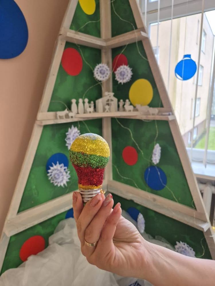 Šia veikla parodėme, kad net ir perdegusiai lemputei galima suteikti antrą gyvenimą – kūrybiškai pažvelgus, ji gali tapti gražia kalėdine dekoracija.