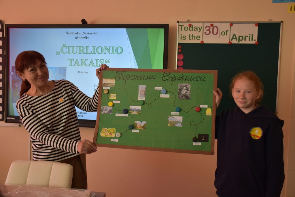 Šalčininkų „Santarvės“ gimnazijos mokiniai dalyvavo kultūros projekte „Čiurlionio pėdsakais Lietuvoje“, kuris skirtas kompozitoriaus ir dailininko M. K. Čiurlionio 150-ąsiams gimimo metines. Jo tikslas – skatinti mokinių domėjimąsi šia iškilia asmenybe, ugdyti kultūrinį sąmoningumą, puoselėti pilietiškumą bei plėtoti bendrąsias kompetencijas per patyriminį mokymąsi ir bendradarbiavimą su kitomis mokyklomis. Projektą iš dalies finansavo Tautinių mažumų departamentas prie Lietuvos Respublikos Vyriausybės, kas suteikė galimybę organizuoti turiningas, įdomias ir prieinamas edukacines veiklas.