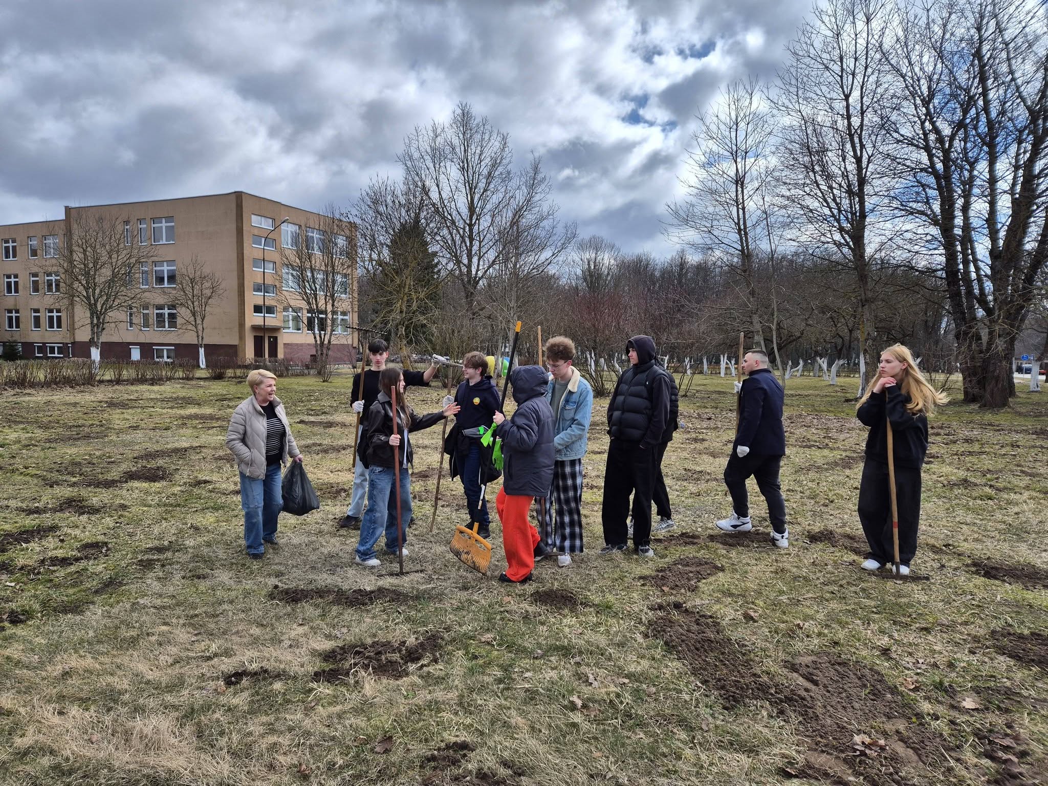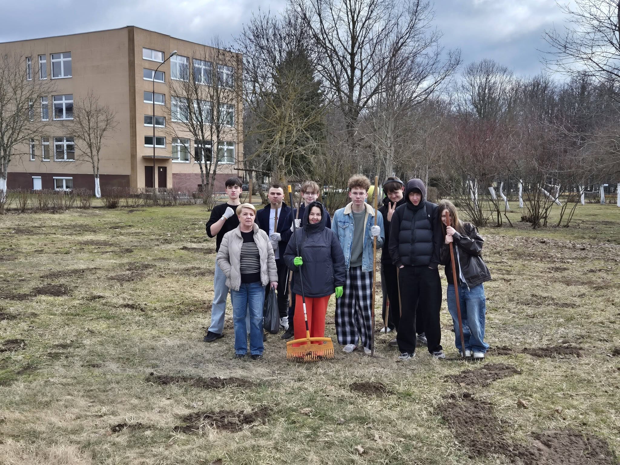 Vyresniųjų klasių mokiniai savo darbais prisidėjo prie švaresnės aplinkos, tvarkydami gimnazijos teritoriją.