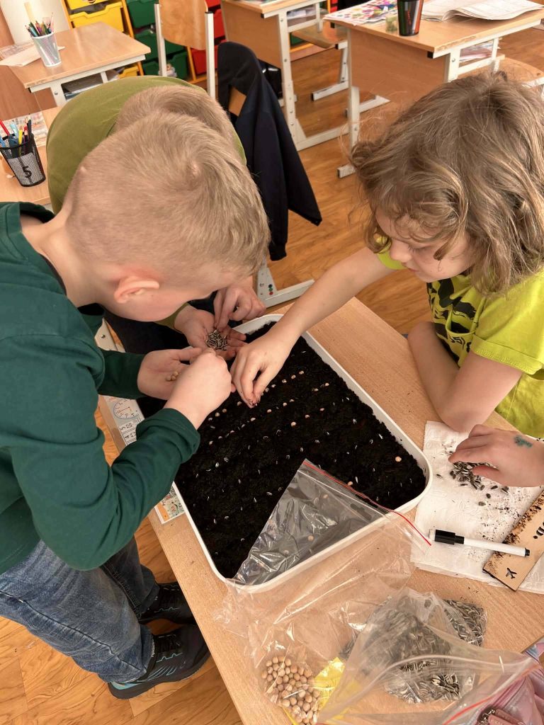 Vaikai susipažino su saulėgrąžų ir žirnių daiginimo procesu – patys sodino, prižiūrėjo ir stebėjo, kaip iš mažos sėklytės išauga gyvybingas daigas. Tai buvo puiki proga ne tik mokytis, bet ir ugdyti atsakomybę bei kantrybę. ![]()